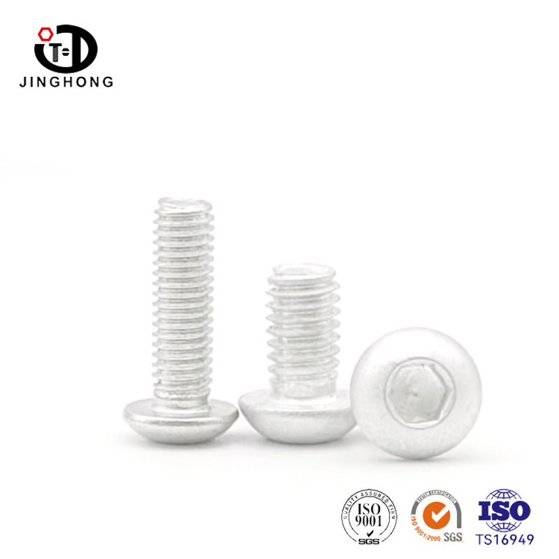 La vite a testa rotonda esagonale in lega di alluminio è realizzata in materiale in lega di alluminio, con una densità solo un terzo di acciaio, ma una resistenza alla trazione di 310mpa. C'è un film di ossido in superficie e il test di resistenza a spruzzo salino supera le 1000 ore. È adatto per ambienti corrosivi come ingegneria marina e attrezzature chimiche.