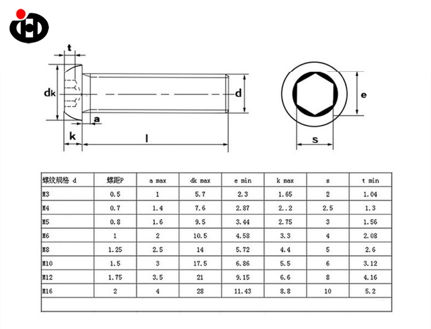 | Nome | Vite a testa rotonda esagonale in lega di alluminio |