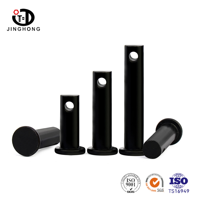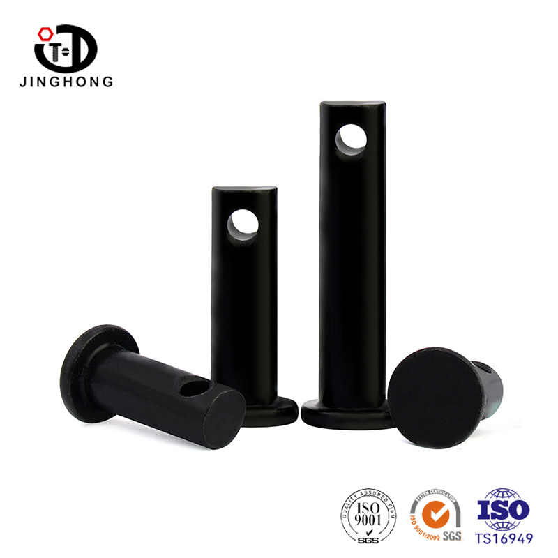 Il perno nero a testa piatta con foro è un elemento di fissaggio con testa piatta e componente forato. La testa piatta di questo tipo di perno è facile da inserire nella parte di installazione e la sua superficie piatta può fornire una buona superficie di supporto. Inoltre, nel foro è possibile inserire una coppiglia o una spilla da balia per rendere la connessione più affidabile ed evitare che si allenti e cada. Questo tipo di perno è applicabile a tutti i tipi di situazioni di assemblaggio meccanico e può essere utilizzato in situazioni che richiedono applicazioni di connessione stabili e sicure.