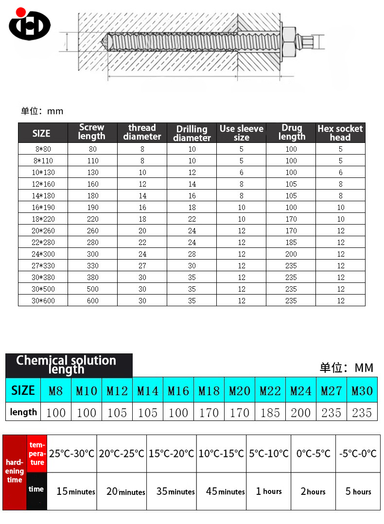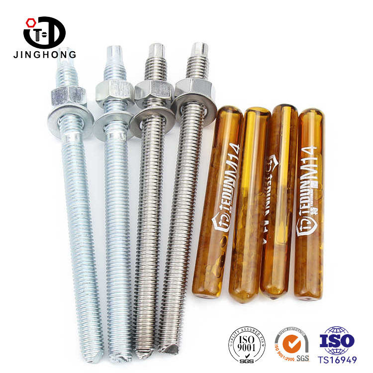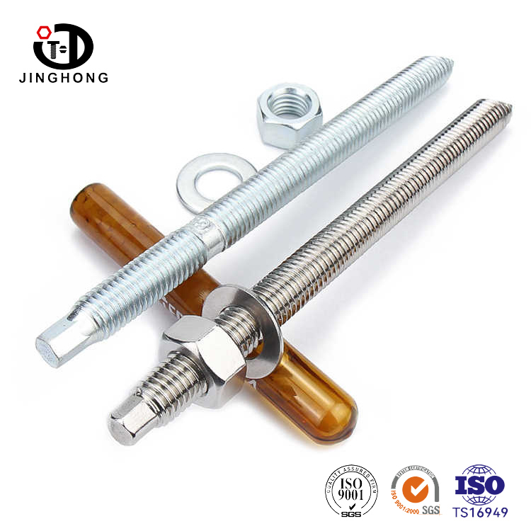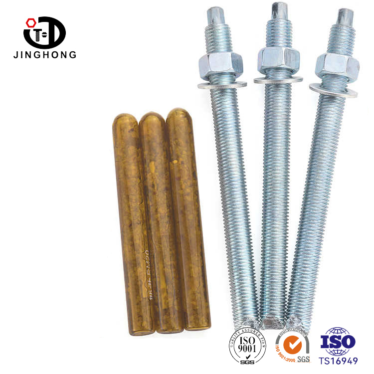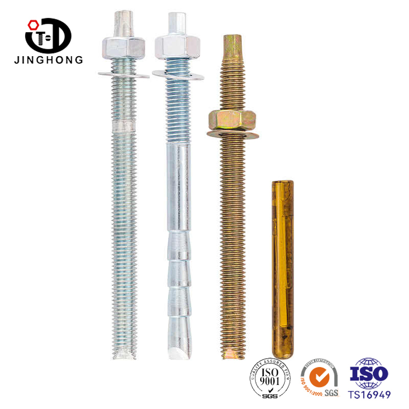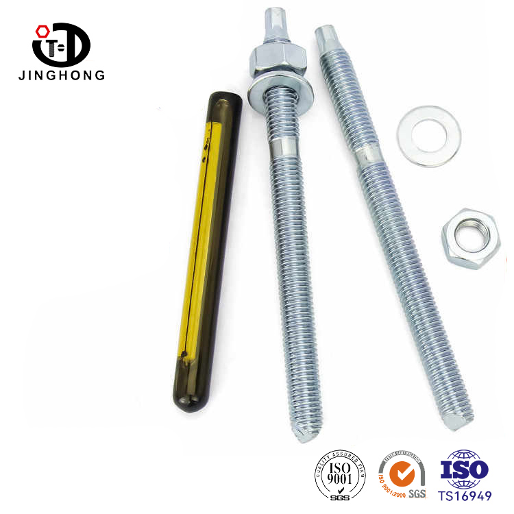I bulloni di espansione chimica sono dispositivi di fissaggio che usano reazioni chimiche per generare forza di espansione, ottenendo così un forte ancoraggio con il substrato. I bulloni in ritardo di calcestruzzo di espansione chimica sono principalmente composti da bulloni, tubi chimici, rondelle, dadi e altri componenti. Durante il processo di installazione, l'asta del bullone viene inserita nel foro pre -perforato e quindi viene iniettato un agente chimico. Dopo che l'agente si è solidificato, si forma una forte forza adesiva tra l'asta del bullone e il substrato.