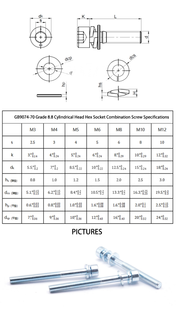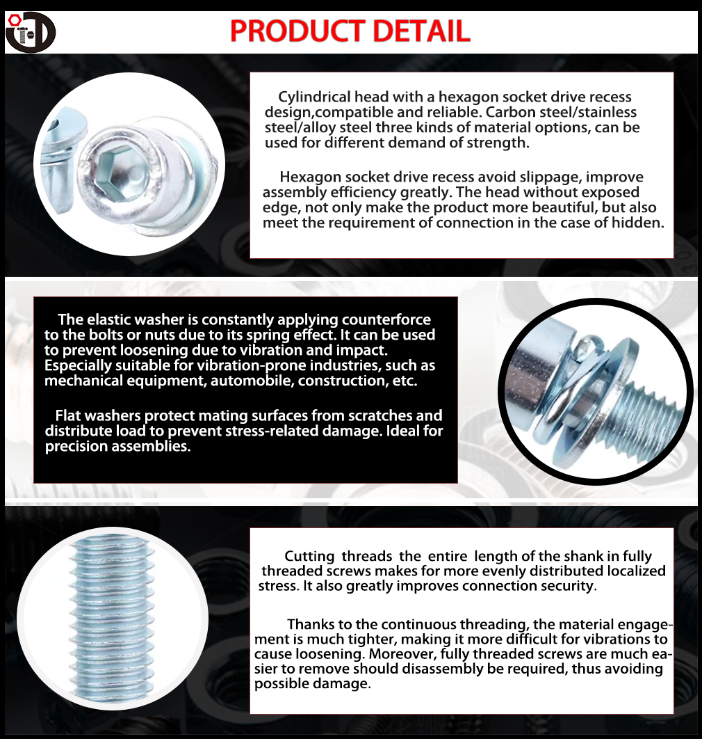 Vite a tre ghiotiche esagonali a testa esagonale eccelle in trasmissione ad alta coppia e installazione a basso profilo, grazie alla sua presa di precisione esagonale e alla progettazione della testa cilindrica. La struttura a tri-componente integrata (vite + rondella piatta + rondella a molla) semplifica il gruppo prevenendo al contempo l'allentamento e il miglioramento della resistenza alle vibrazioni, rendendolo ideale per applicazioni di carico dinamico. Ampiamente utilizzato nella produzione di macchinari, industria automobilistica, elettronica e strumenti di precisione, fornisce soluzioni affidabili per lo smontaggio ad alta frequenza o le connessioni critiche.