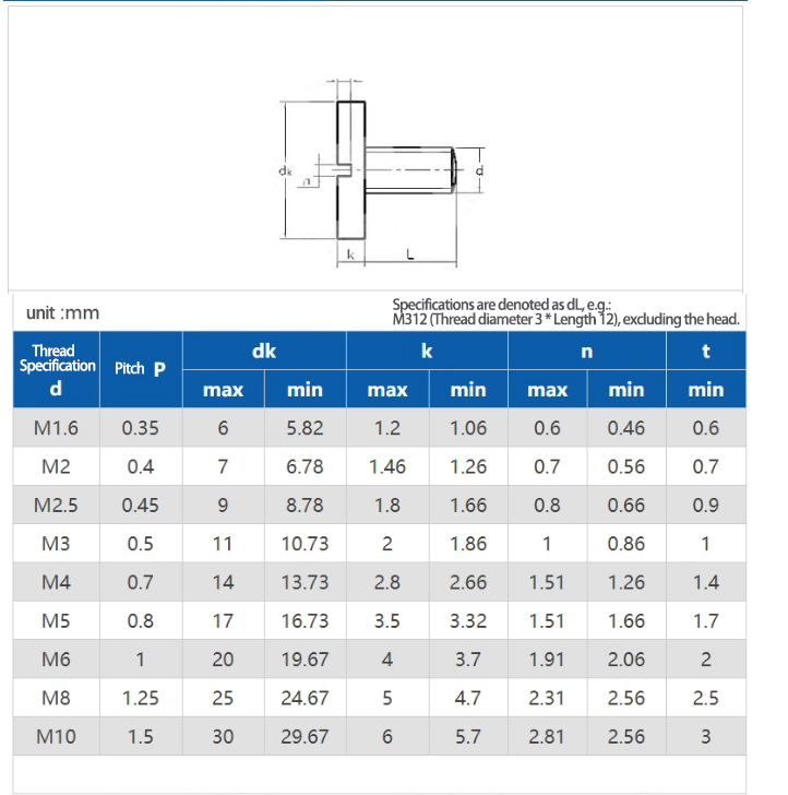 | Nome | Vite a testa tonda con intaglio a testa piatta |