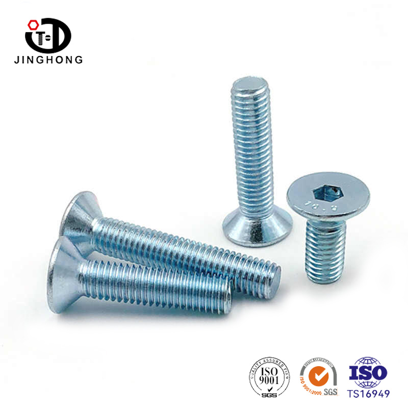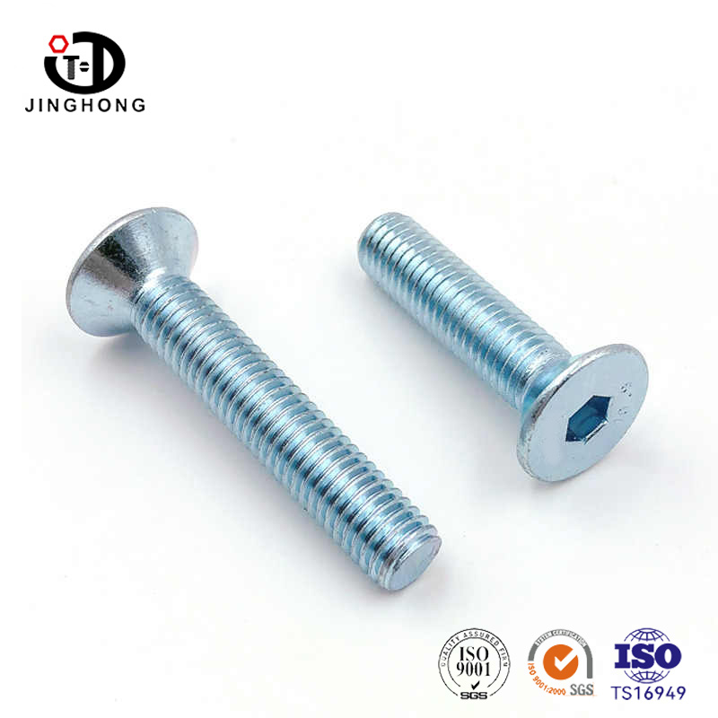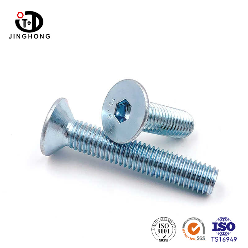 Il trattamento galvanizzante dello zinco blu e bianco sulla vite del tappo della testa piatta non solo dà alla vite una lucentezza metallica bianca argento, ma gli conferisce anche un'eccellente resistenza alla corrosione. Secondo i dati di test di spruzzo salino, il rivestimento di zinco blu e bianco può resistere a più di 720 ore in un ambiente di spruzzo salino neutro al 5%, che può efficacemente estendere la durata della vite e ridurre i costi di manutenzione delle attrezzature.