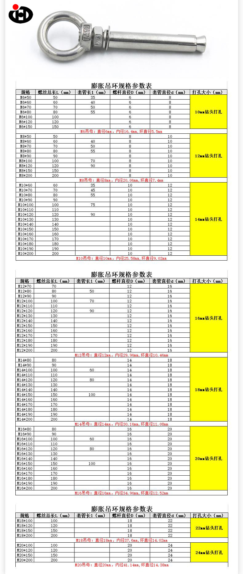 L'ancoraggio a bullone per gli occhi pesanti è realizzato in materiale in acciaio inossidabile addensato 304, con una resistenza alla trazione di oltre 400 milioni, e può resistere alle forze di trazione che vanno da centinaia di chilogrammi a diverse tonnellate. Sia che si tratti di divani, linee di detenzioni, apparecchi di illuminazione pesanti o installazione di attrezzature industriali e ringhiere protettive, può fornire un supporto fisso affidabile.