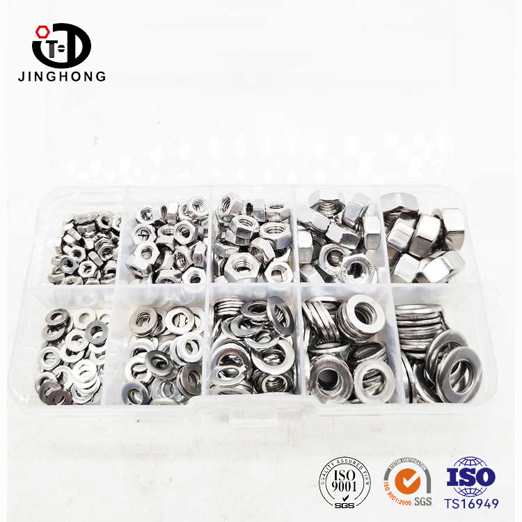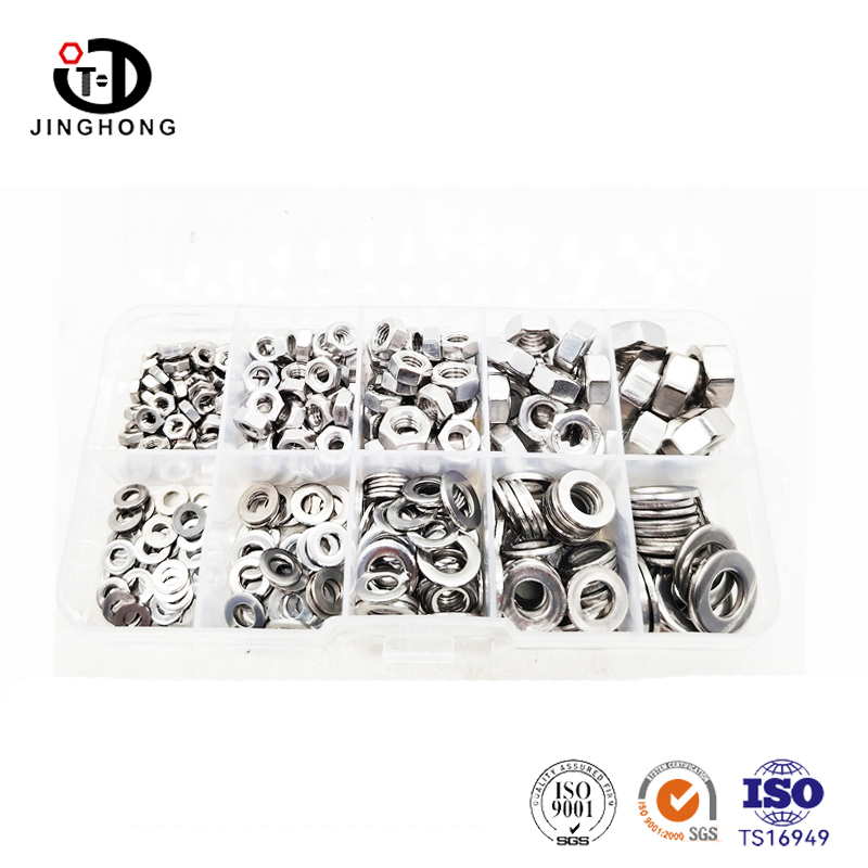 Jinghong fornisce specialmente kit di dadi in acciaio inossidabile, che classificano perfettamente varie specifiche e tipi di dadi, dai dadi esagonali standard comuni a dadi quadrati e dadi di cappuccio adatti per occasioni speciali, tutte disponibili nella scatola. Noci di diverse dimensioni coprono ogni aspetto dall'assemblaggio di dispositivi elettronici piccoli e precisi all'installazione di grandi apparecchiature industriali.
